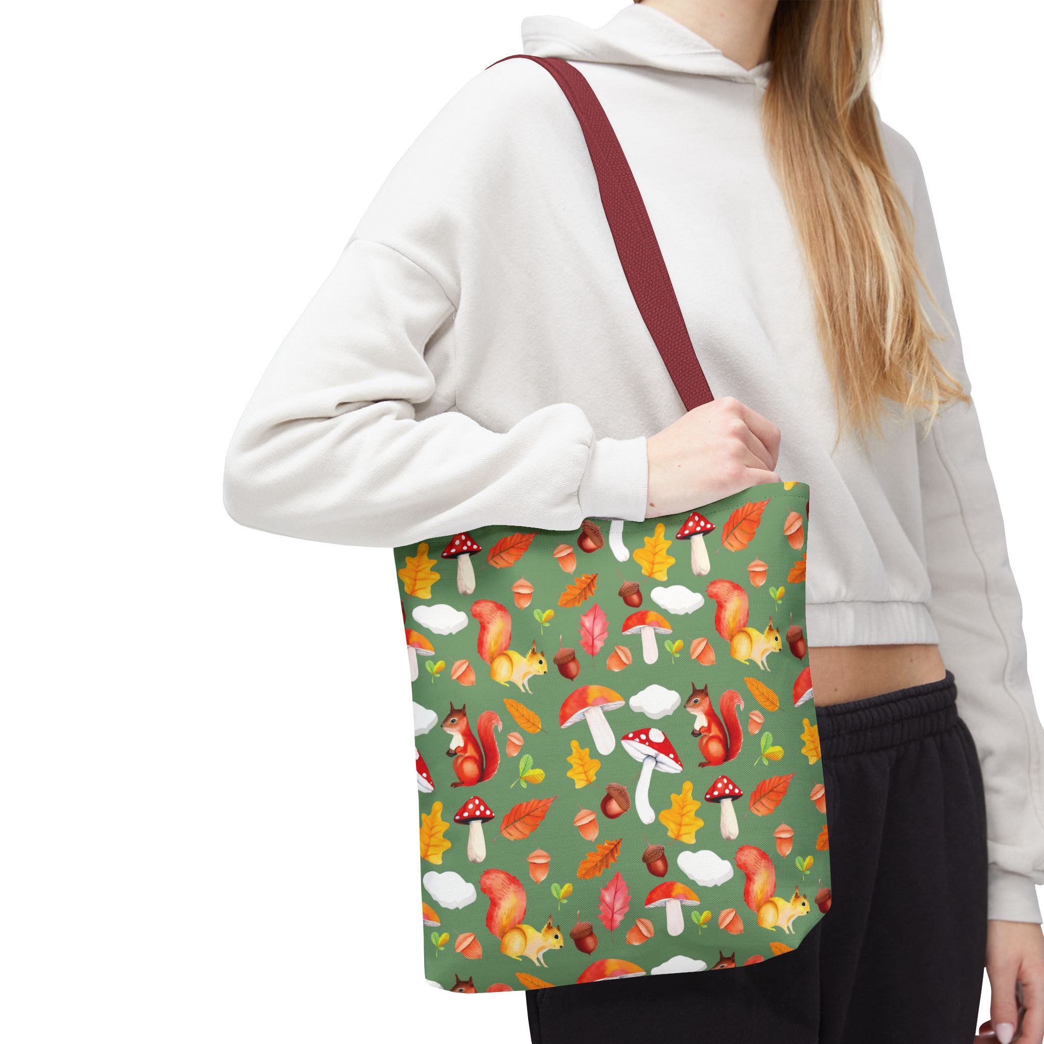Elevate your everyday adventures with this vibrant Tote Bag, designed to bring a pop of color and whimsy to your life. Its charming squirrel and mushroom design captures the essence of autumn, making it perfect for nature lovers and anyone wanting to embrace cozy vibes. Ideal for shopping trips, picnics in the park, or daily commutes, this tote complements casual outings while reflecting your unique style. Great for gifting during holidays like Thanksgiving, birthdays, or just as a thoughtful surprise for friends, family, or yourself!